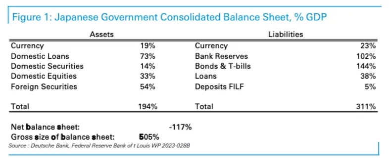 故事情节是日本负债累累。对冲基金兄弟们纷纷押注日本即将崩盘。但那些押注日本的人总是输。许多宏观投资者对日本过于悲观,因为他们不了解日本合并的公共和私人资产负债表。对于相信个人权利的西方投资者来说,这是一个很容易犯的心理错误。但在日本,集体至高无上。因此,在西方被视为私人的某些行为者只是政府的替代机构。