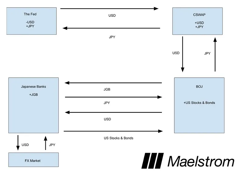 日本公司必须平仓,但不能在公开市场上出售某些资产。这意味着美国的一些政府机构必须印钞并将其借给日本公司的某些成员。请允许我重新介绍一下自己。我的名字是中央银行货币互换(CSWAP)。