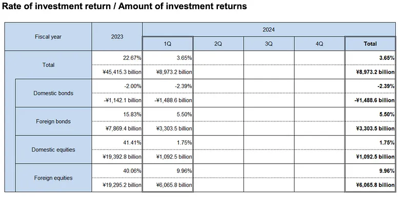 如果不是其海外股票和债券投资组合的出色回报,GPIF 上个季度就会亏损。国内债券亏损是因为日本央行退出 YCC,导致日本国债收益率上升、价格下跌。然而,日元继续走弱,因为日本央行和美联储之间的利差比 Sam Bankman-Fried 发现 Emsam 药丸时的眼睛还要大。