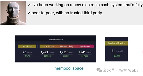 然而,比特币在产品设计层面限制了数据吞吐量。其单位时间内能处理的交易笔数有限,如果待处理的交易数量快速上升,用户为了快点交易成功,就会发起价格战,迅速拉高付出的手续费。比特币网络内手续费最高的单笔交易出现在2024年出块奖励减半后,一笔上链优先级中等的交易手续费达到150美元。可以说,比特币网络昂贵的交易手续费已成为一个难题。