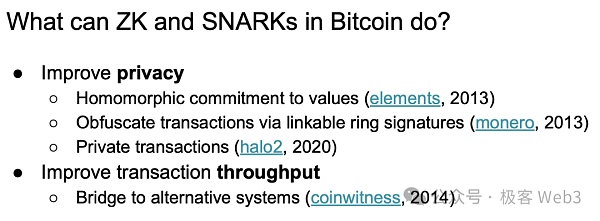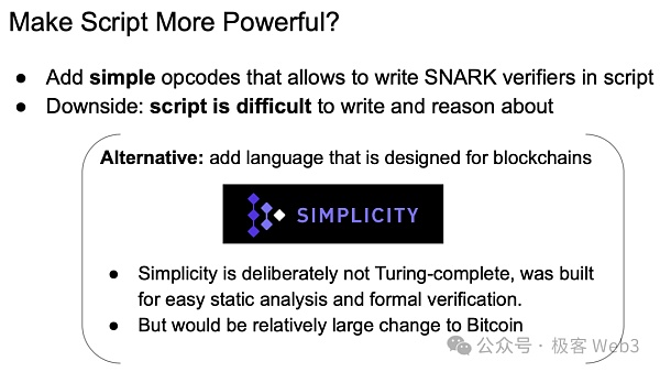 综上,比特币可能会有一个潜在路径,通过启用如OP_CAT这样的简单操作码,让大家可以用比特币脚本中验证SNARK。另外值得一提的是,最近有一个名为“Great Script Restoration”的提案,启用了乘法操作码,允许所有算术操作码以任意精度操作。