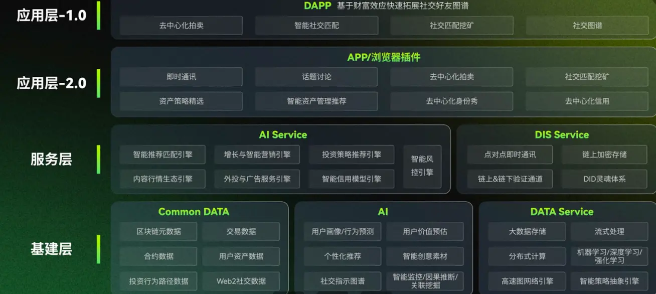 从生态看,Match 本身也是一个具备可编程性的底层协议,包含服务层和基础设施层,以及一系列 AI 组件。基于该基础设施层,Match 支持基于底层建立上层应用,并与其身份系统形成联动,并以模块化的方式为开发者提供支持,为后续社交生态的爆发做准备。