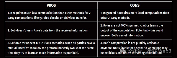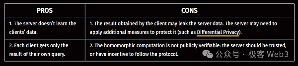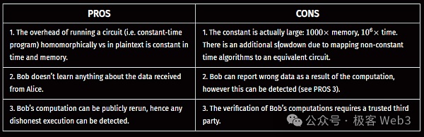 下面这个表格总结了FHE外包模式的优缺点。