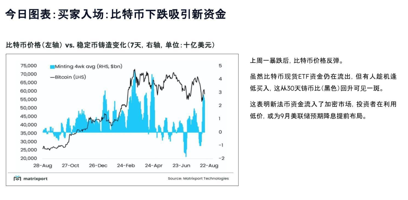 这表明新法币资金流入了加密市场,投资者在利用低价,或为 9 月美联储预期降息提前布局。