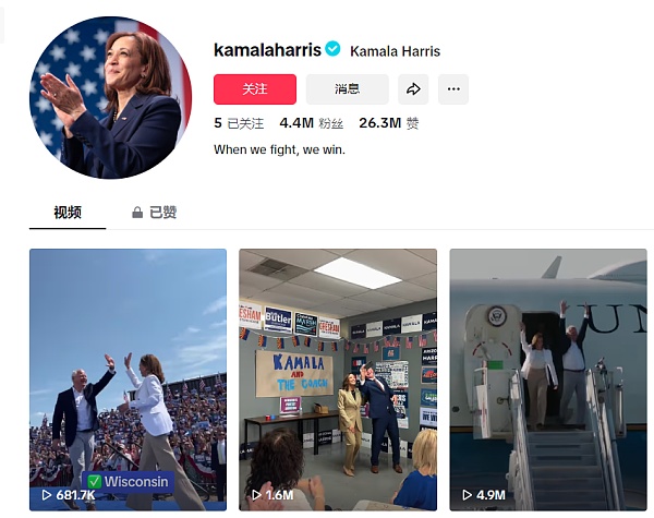 从政治主张来看,哈里斯和拜登一脉相承,在税收和外交上更多地继承和延续拜登的政策,比起单边主义的特朗普,强调反对孤立主义、倡导国际合作的外交政策,但在其他方面则创新与保守相对,突出个人差异性,例如在贸易政策,哈里斯反对自由贸易,同时也提出了更为激进的绿色经济议题。从优势而言,相比拜登,年龄问题不再成为总统候选人的困扰,她也更受女性和少数裔的青睐,日前其也开通了tiktok以贴近年轻选民,获得了400万粉丝。