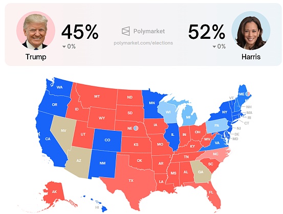 而对于加密行业,两边押注或许才是最好的方式,毕竟言行合一并不简单,尤其是在满嘴跑火车的政客面前。Polymarket的数据显示,加密之风也正吹向哈里斯,哈里斯以52%的获胜概率略胜特朗普。