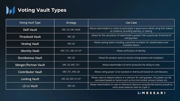 这就是 “Council” 起到的作用,为各种情况提供不同的治理策略。例如,决定什么可以作为投票权重是大多数链上治理合约面临的问题。虽然大多数 DAO 通常使用基于代币的权重来进行治理,但这种方法的缺点在我们之前的文章中已经提到过。投票库的出现就是为了解决这个问题,它使 DAO 可以根据实际需求轻松切换不同的投票策略。而且,由于这些投票库可以通过核心投票合约进行升级或替换,这为多种场景提供了更加灵活的投票方式。