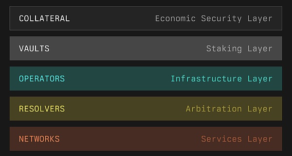 Symbiotic的模块化设计涉及5个主要角色: 抵押品(Collateral),保险库(Vaults),操作员(Operators),解析器(Resolvers)和网络(Networks)。我们将简要介绍这些角色。