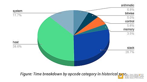 Revm和原生执行之间的差距是非常明显的,特别是revm仍然慢1-2 OOMs,不值得作为独立的VM环境。另外还发现,目前没有足够的计算密集型合约来保证revm的使用。“例如,我们分析了历史同步期间每个操作码所花费的时间,发现revm中大约50%的时间花在了“主机”和“系统”操作码上。”