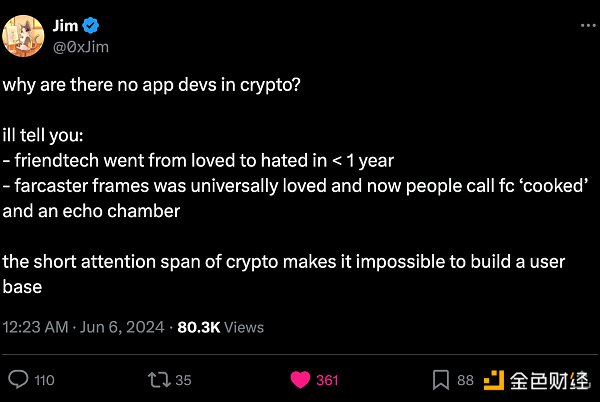 只是,从长远来看,必须将投机需求吸引来的用户转化为真正享受服务核心价值的用户,从而建立有意义的漏斗,促进投机之外的交互。此外,还需要制定一个能够承受的价格和需求短期内的代币发行和分配框架,最终提供超越投资机的社交图谱和产品价值。