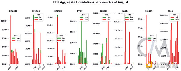 如下图所示,市场参与者在崩盘期间减少了对 ETH 的多头敞口,或者被清算。这些杠杆多头仓位的强制清算导致未平仓合约进一步下降,因为未平仓期货合约被大量平仓。这种价格下跌、追加保证金和清算的自我强化循环可能会加剧市场的抛售。精明的投资者可以利用密切监测市场清算来了解市场特征,了解推动数字资产价格变动的潜在动态,并相应地调整交易策略。