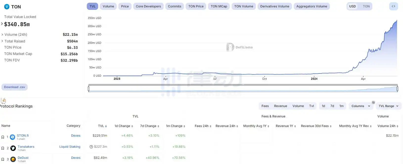 TON网络TVL超3.4亿美元,过去一个月涨幅超一倍