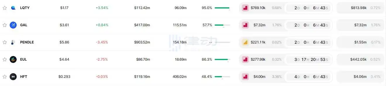 本周解锁数据一览:GAL、HFT将一次性解锁合计价值千万美元代币