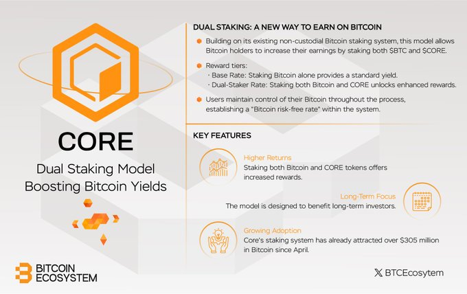 通过此升级,比特币质押者将有机会质押比特币 及其 CORE 代币 以赚取更高的利率。比特币持有者可以继续质押他们的比特币以获得基本无风险利率,而同时质押 CORE 代币的持有者可以获得「双重质押利率」。双重质押有望进一步巩固 Core 将比特币从单纯的价值存储转变为一种安全的、收益生息的资产的变革。