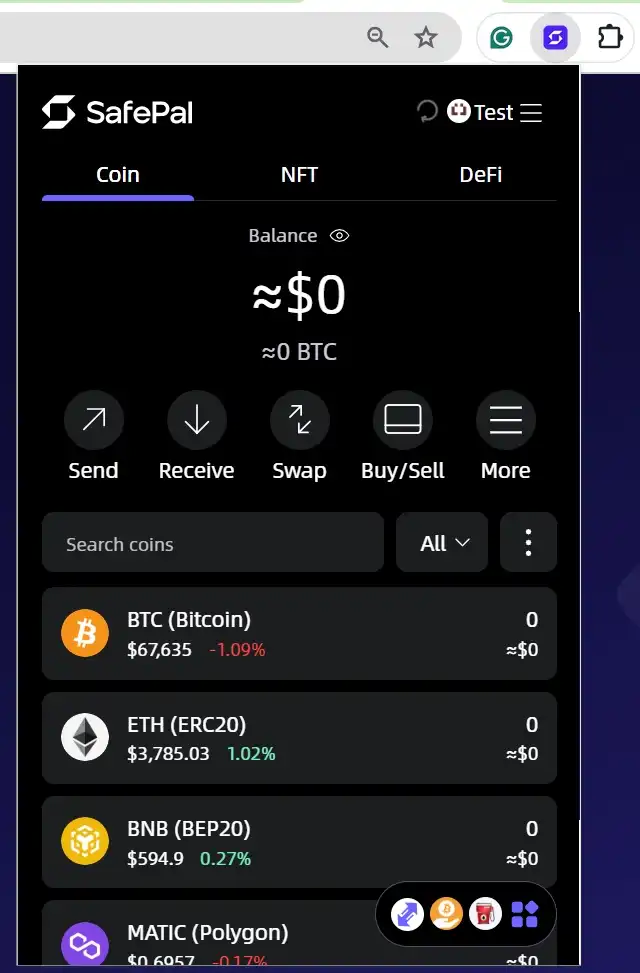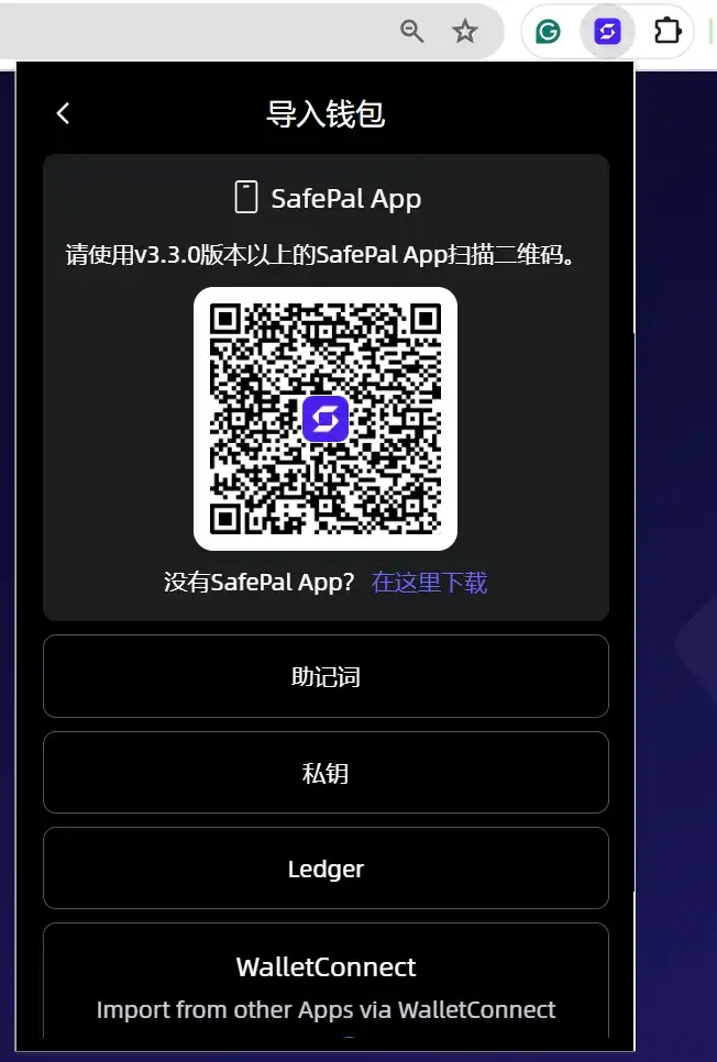 同时支持 EVM 和非 EVM 公链,可以在同一个浏览器上同时连接不同链上的 DApp,操作方便。内嵌 Swap 闪兑,支持关联其它钱包如 Ledger、小狐狸钱包、TrustWallet 等。有一个安全功能值得一提,这款插件钱包还支持从 SafePal App 扫码连接登陆,用户在 App 上生成的钱包,不需要在浏览器插件内导入助记词即可连接,当需要签名时,会自动在 SafePal 手机 App 上唤起签名。这样最大程度避免了私钥曝光和被盗的风险。