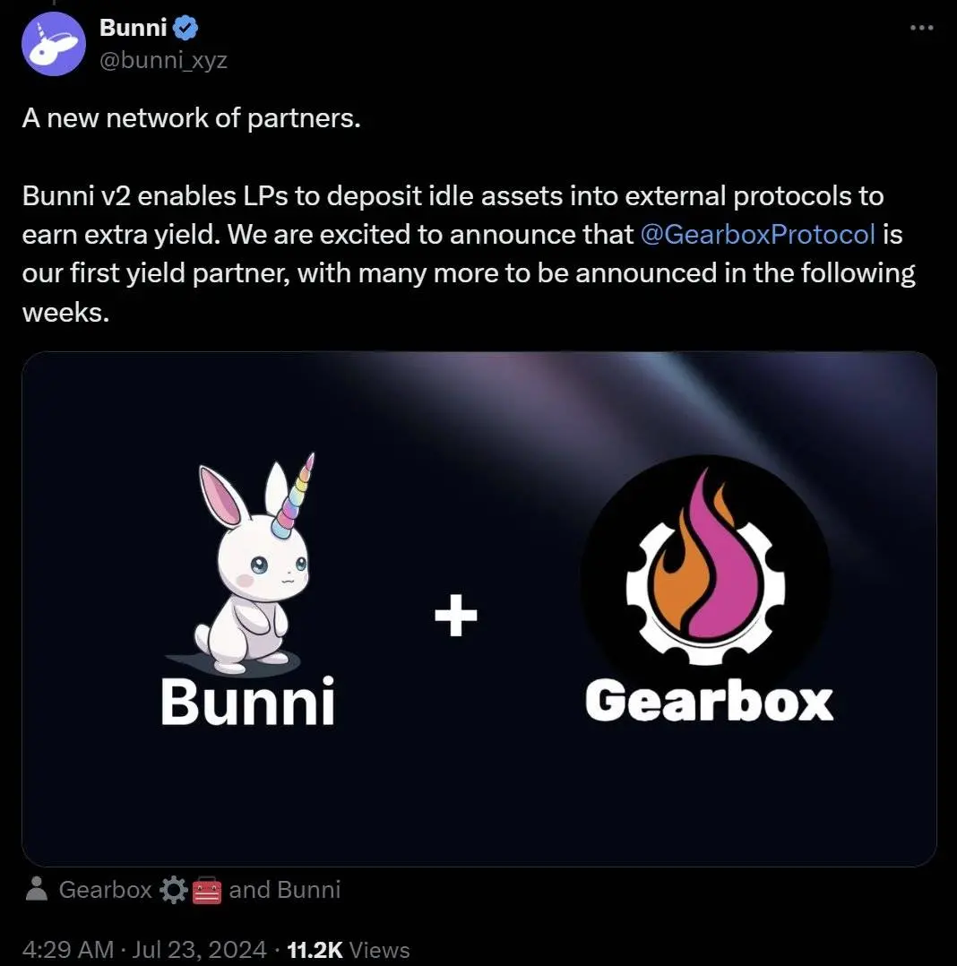 超出范围钩子是一个新尝试,通过与外部协议互操作闲置流动性来提高资本效率,而不是在闲置流动性超出当前市场价格范围时重新调整流动性提供的范围。通过将闲置流动性存入可以产生利息收入的借贷协议和金库,例如 Aave、Yearn、Gearbox、Morpho 等,它不仅为 LP 提供来自流动性提供的交易费用,还提供额外的回报。当然,由于 Bunni 的尝试仍处于测试阶段,因此需要密切观察未来可能出现的权衡,例如由于流动性互操作性导致的合约风险增加或 AMM 交换所需流动性的耗竭,这些都可能以资本效率为代价。