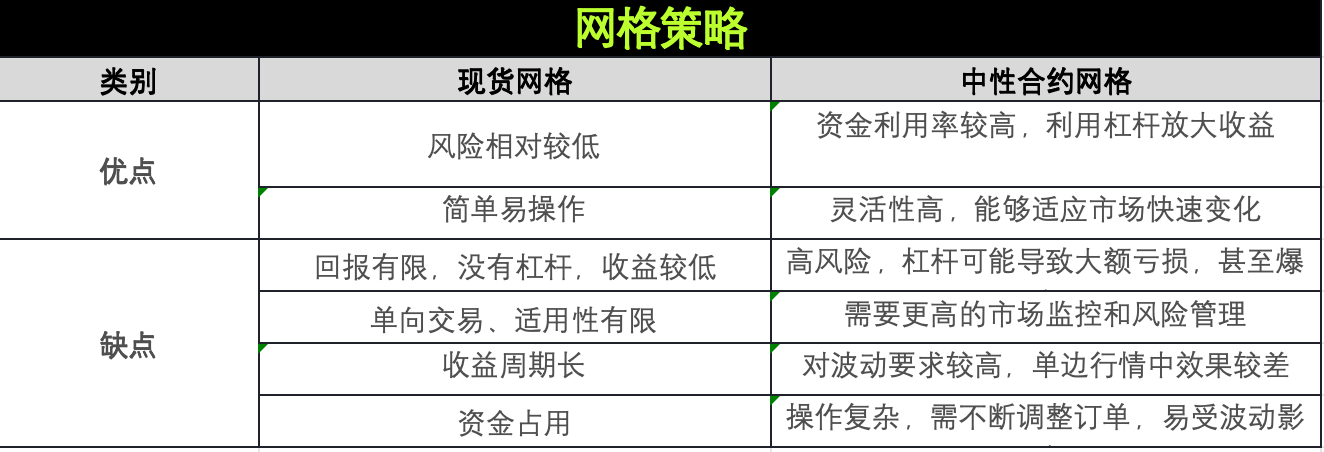 中性合约网格格策略可能更适合风险承受能力较高、对市场有深入理解的投资者。现货网格策略可能更适合风险承受能力较低、追求稳定收益的投资者。