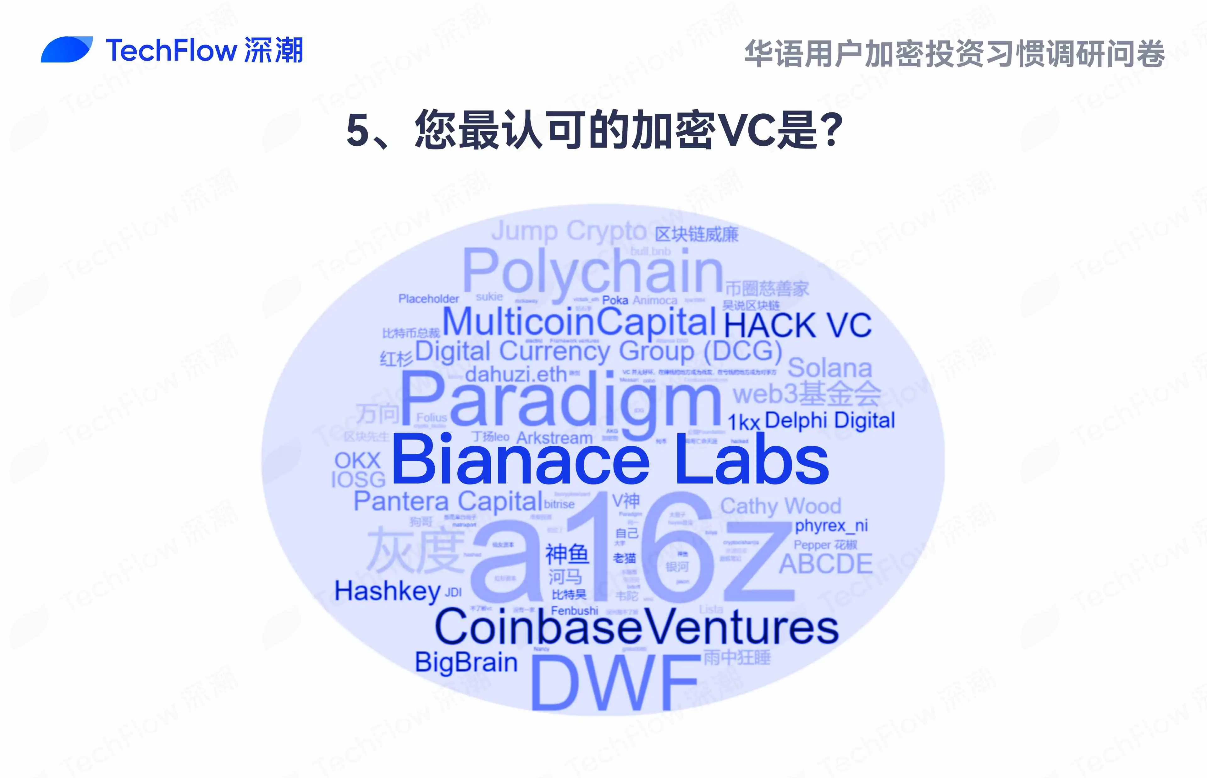 在受访者最认可的加密 VC 调查中,根据受访者提名,a16z、Paradigm、Binance Labs 位居前三。
