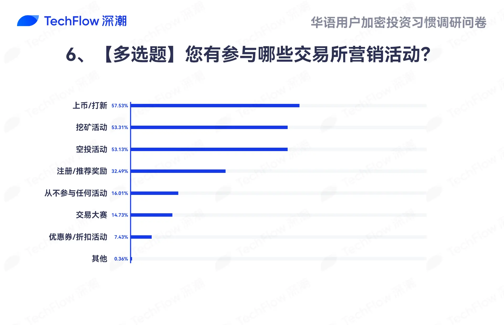 总的来说,受访者参与的交易所营销活动分布相对来说较为均匀。