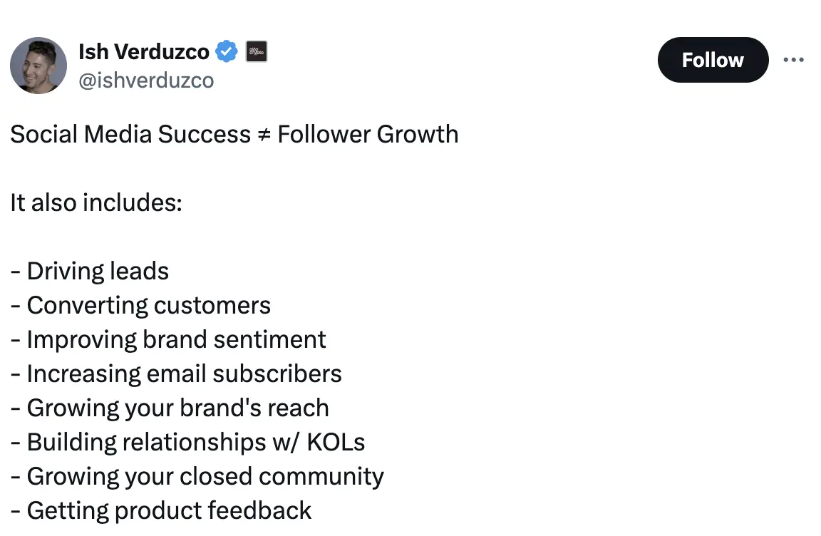 这里的目标是创建人们想要关注的社交动态,因为它们提供了其他地方无法获得的有价值的信息和专业知识——无论是对一个流行项目的内部观察、对行业动态的有趣看法,还是小众的技巧和窍门。简而言之,优秀的账户有独特的视角,使其与众不同。