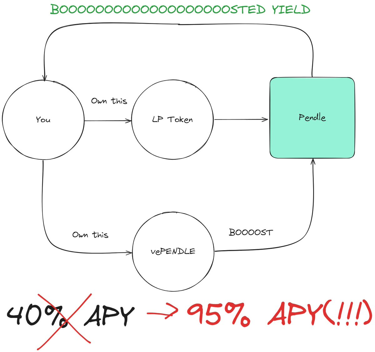 持有 vePENDLE 的 LP 将享受到比普通 LP 高达 2.5 倍的收益。当 Pendle LPing 在 Pendle 上时,用户将获得来自基础收益来源的收益、swap 费以及 PENDLE 奖励。