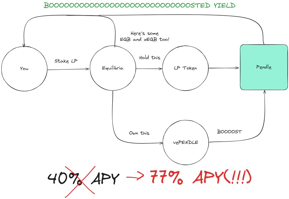 Equilibria 是另一个大的 vePENDLE 持有者,利用用户的 Pendle LP 代币,为用户带来更多收益。