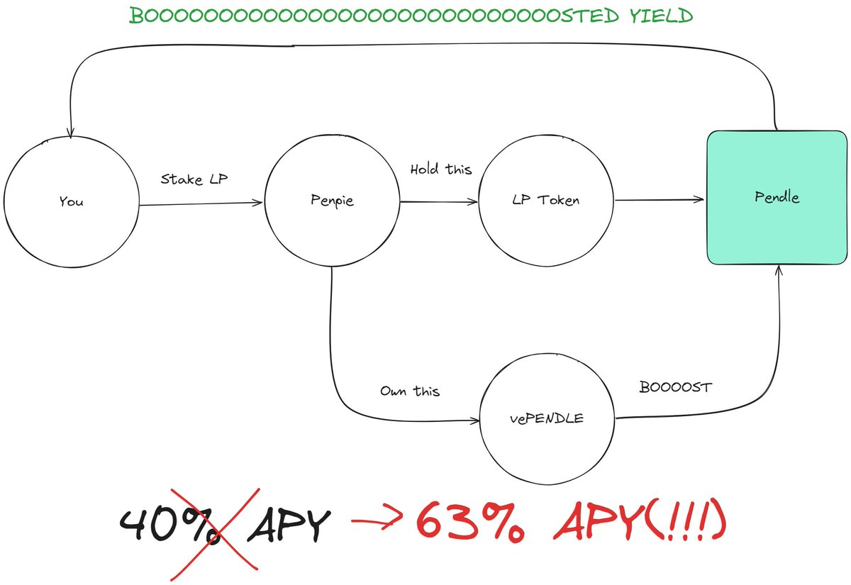 如果用户不持有 PENDLE,可以通过 Penpie 增加 2.07 倍的奖励,从 40% 的 APY 增加至 63%。