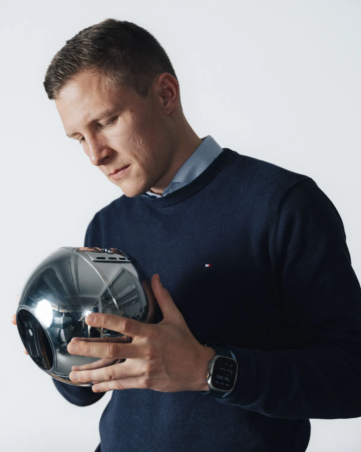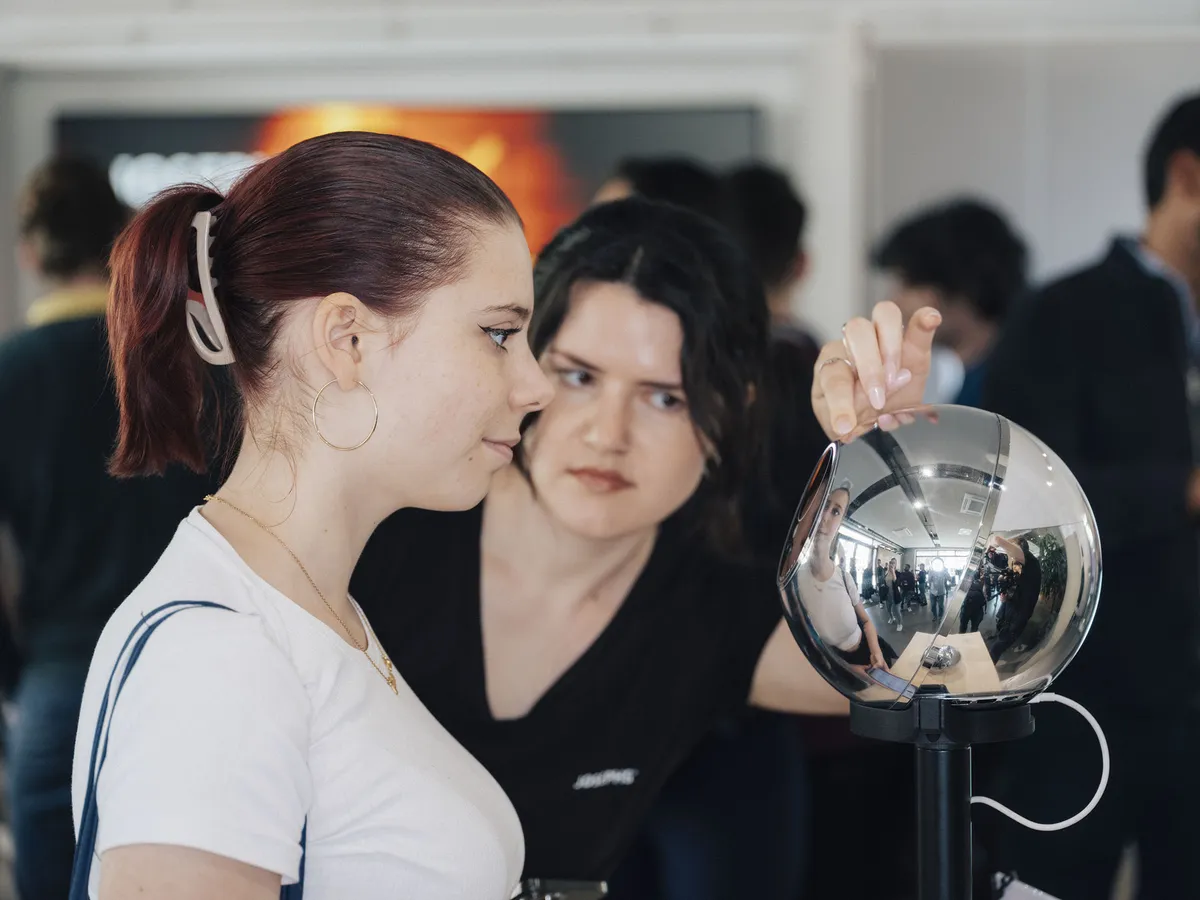 在主干道旁一家名为 Josephs 的未来主题零售店,参观者们发现了一个神秘的金属球,它的大小与哈密瓜相当。这个名为 Orb 的球体表面镀有闪亮的铬,安放在一根黑色杆子上,杆子从一个巨大的矩形木质底座中伸出,整个装置被放置在 Josephs 主展厅边缘的一扇窗户附近。而这个奇怪物体的创造者之一 Alex Blania 就在旁边不远处。他坐在房间一头的一把椅子上,一位采访者当着数十名德国计算机科学和工程专业学生的面向他提出各种问题,这些学生正在庆祝本地男孩 Blania 取得的成功。