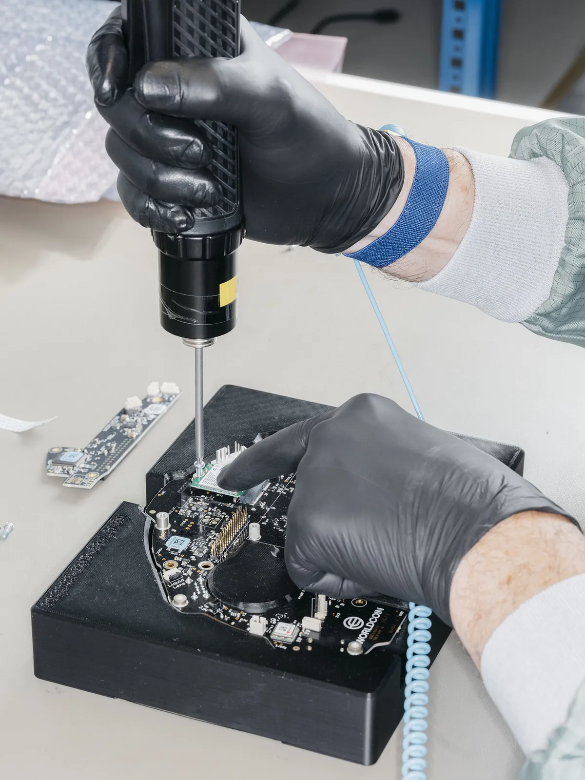合作的制造商 Jabil Inc .在耶拿组装 Orb 。耶拿是一座拥有悠久光学技术历史的小镇,距纽伦堡以北大约两个半小时车程。1846 年,卡尔蔡司在那里开设了他的第一家光学实验室,时至今日,耶拿仍然聚集着许多光学行业资深人士,其中一些人现在仍在手工制作 Orb 。整个工序大约需要十几个人在几个不同的工位上工作,将电子设备组装在一起并进行测试,然后进行最后一步,即装上镀铬外壳并密封所有组件。每个 Orb 的制造成本约为 1,500 美元,而且与典型的消费电子设备不同,没有必要生产数百万个 Orb 或将它们放入精美的包装中。 Jabil 工厂的第二条生产线刚刚启用,应该能够生产出 Blania 认为注册 10 亿人所需的数万个 Orb 。迄今为止, Worldcoin 已经制造了 3,300 个 Orb 。