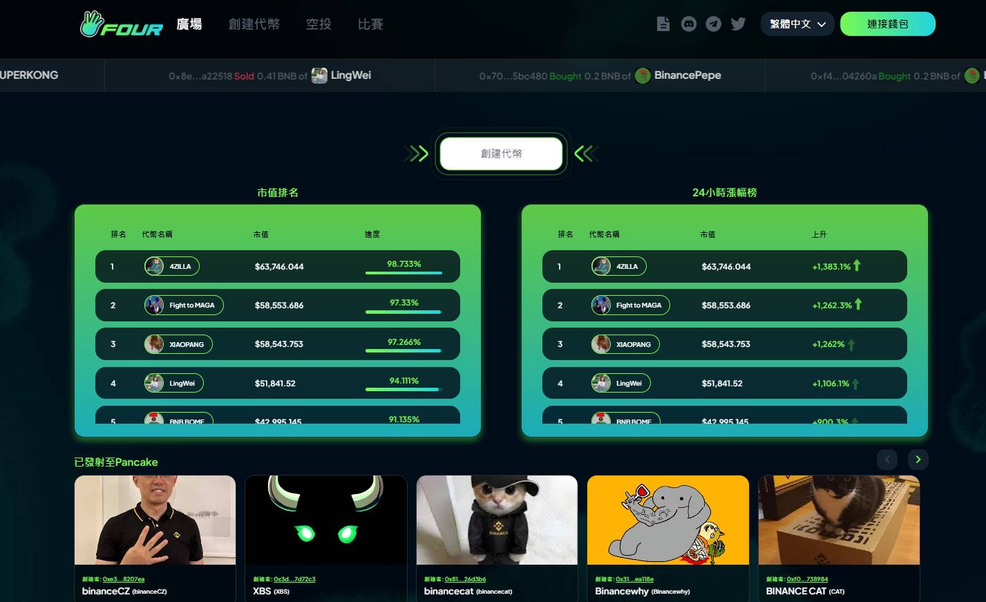 今早刚一睁眼就被链上冲锋群铺天盖地的「binancedog、binancecat」讨论淹没,一看名字不难发现,Pump 的风今天吹到了 BNBChain 上,进一步了解一下,是 BNBChain 的 Pump 平台 Four.Meme 出现了金狗,点燃玩家们冲锋 BNBChain 的火热情绪。