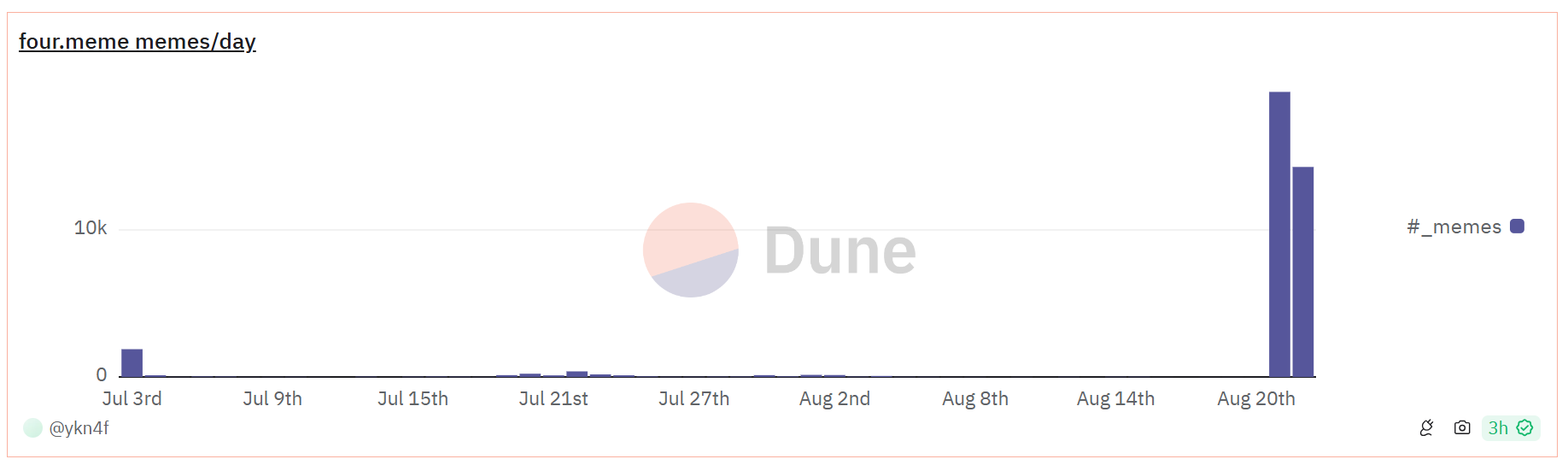 只不过不仅散户们想到这点,镰刀们也想到了,各种已经熟练至极的 DEV 闻着味就来到了 BNBChain,驾轻就熟地进 Four.Meme 开始布局,24 小时内 Four.Meme 的新资产发行数比以往时期的总和都要多上几倍,等到东八区的太阳升起时,热情满满的冲锋玩家赚没赚钱不清楚,但大多 DEV 应该已经吃饱喝足准备开启美好一天了。