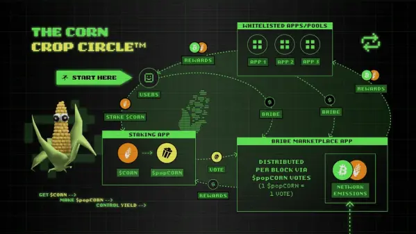 简单来说,$CORN 质押者质押 $CORN 可以获得 popCORN,而 popCORN 代表投票权力,其他人可以用代币“贿赂” $CORN 质押者来获得质押者手中的投票权。当然,投票决定出来的程序就是“赢家”,而和“赢家”互动的用户将获得本轮奖赏。Corn 希望通过由质押者决定“哪个程序是“赢家”,哪些人可以得到“赢家”的奖励”,来吸引更多 Corn 的建设者。