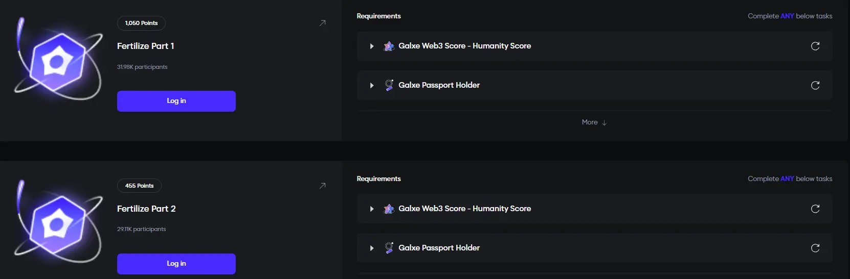 Galxe 提供两个银河任务,按步骤完成可逐步获得 Point。