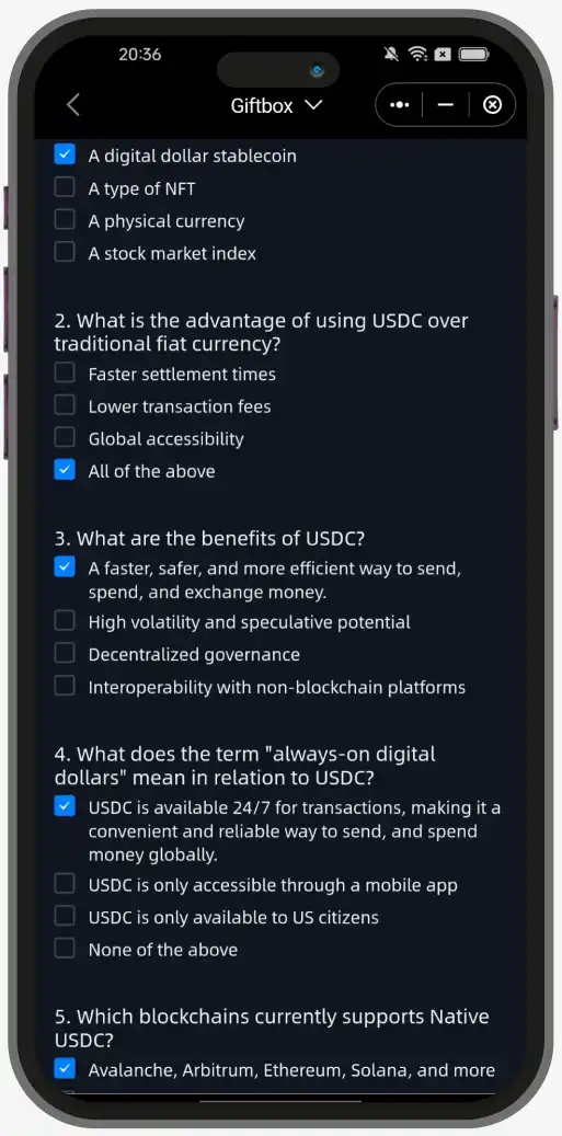 答题任务是关于$USDC 币介绍的,还是比较简单的,可以参考下列答案: