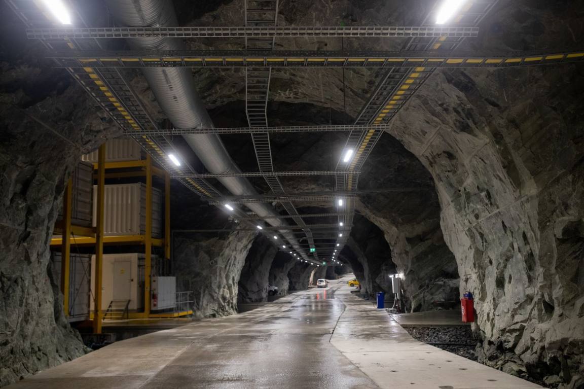 Northern Data 数据中心的一条通道,Northern Data 数据中心是一座废弃的挪威矿井