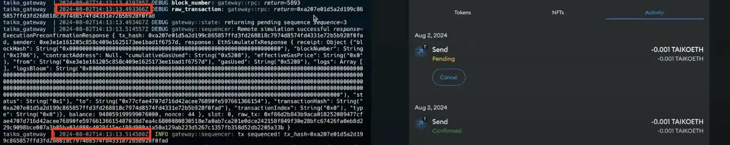 基于预确认简单地使用一些 L1 验证者为 L2 用户提供预确认。目前,基于预确认在 Helder 测试网上成功运行,现在可以在 Taiko 上进行闪电般快速的交易(Gattaca 的演示中为 20 毫秒,Arbitrum 中约为 260 毫秒)。