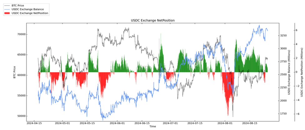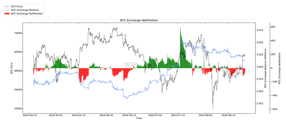 BTC 在持续性少量流出,逐渐消化之前流入的大量筹码。