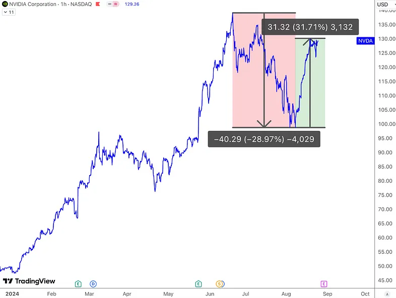 市场上的不确定性可能会带来一些股价波动,估值倍数也有收缩的可能,但目前阶段仍然可以保持乐观,因为问题主要集中在供应链,而非需求,些供应链问题是可以解决的,不会从根本上破坏 NVIDIA 的长期增长势头,这家公司在未来几年内依然具有吸引力,例如最近短短几天就出现了 30% 的反弹可见市场抄底的热情。