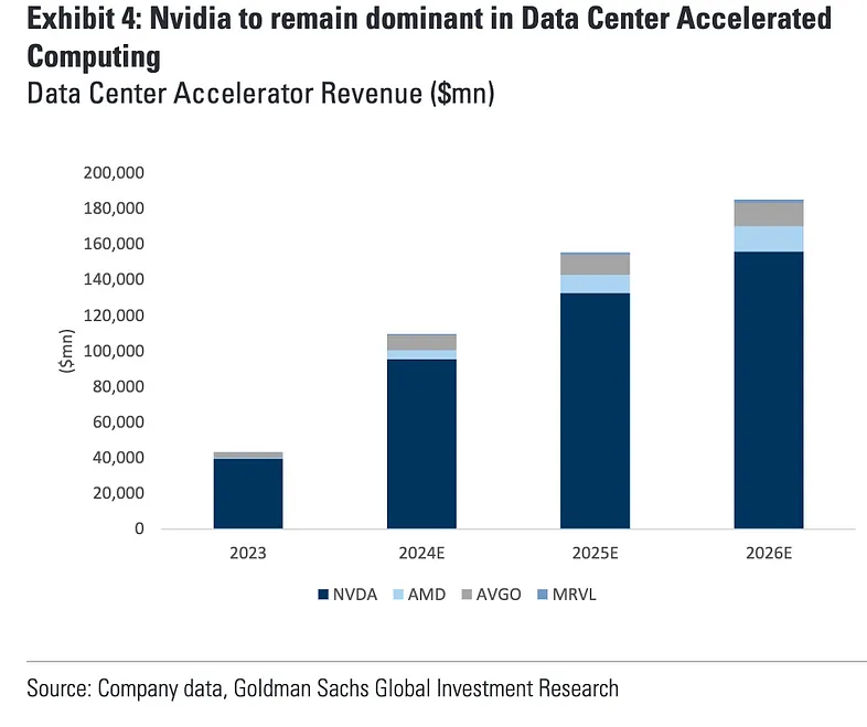 不过这一担忧目前还没有足够的案例支撑其发酵,华尔街依旧预计英伟达将在数据中心芯片中保持主导地位: