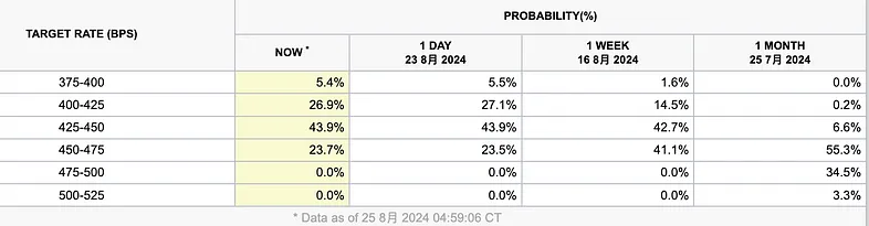 所以个人认为鲍威尔这次表态并没有超预期的鸽派,所以在传统金融市场没掀起太大的水花,大家最关心的是否年内有单次 50bp 降息的机会,鲍威尔完全没有暗示。所以关于年内的降息预期跟之前几乎没啥变化: