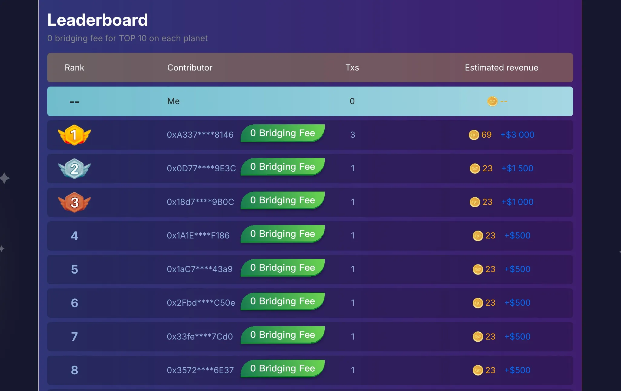 · 这 8 个网络的前 10 名玩家将在比赛期间收到 100% 的跨链费退款。