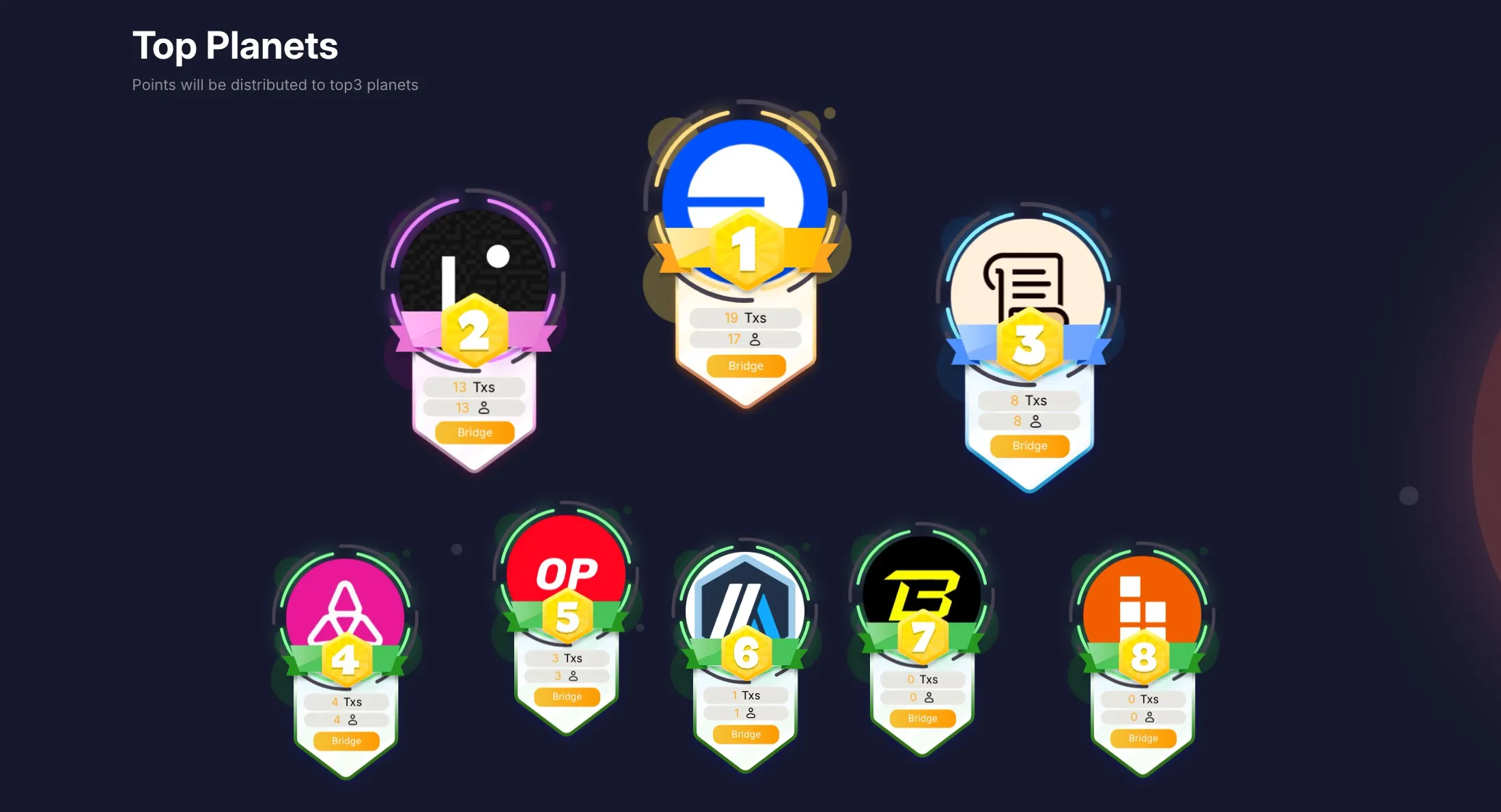在比赛期间,八个网络将根据「To 链」交易的数量进行排名。拥有最高「To 链」交易数量的网络将被选为冠军网络!