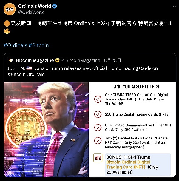 ● 特朗普在 Ordinals 发行 特朗普交易卡