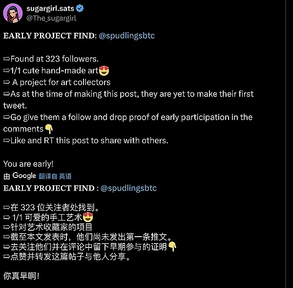 ● sugar 分享,发现了一个早期 Ordinals 项目,非常可爱的手工艺术,不过目前暂无推文,DYOR!