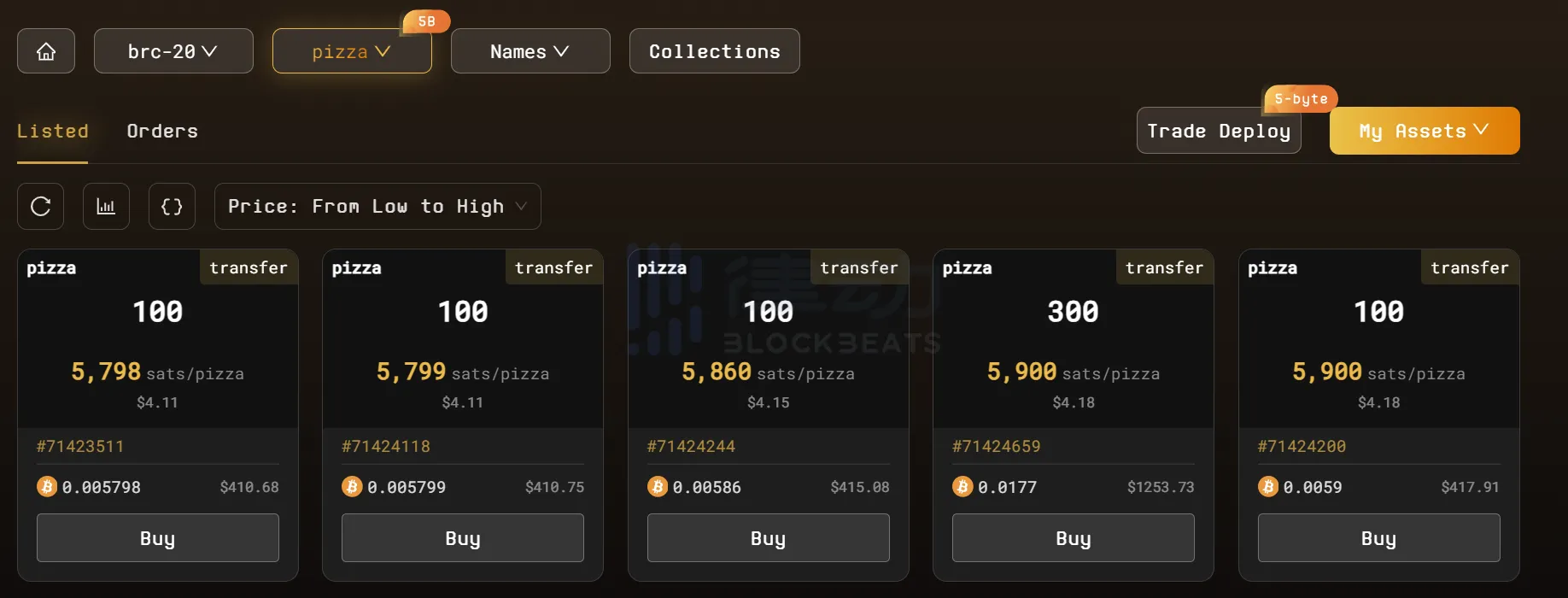 6 月 7 日,据 Unisat 数据,BRC-20 五字符代币 PIZZA 暂报 4.11 美元。