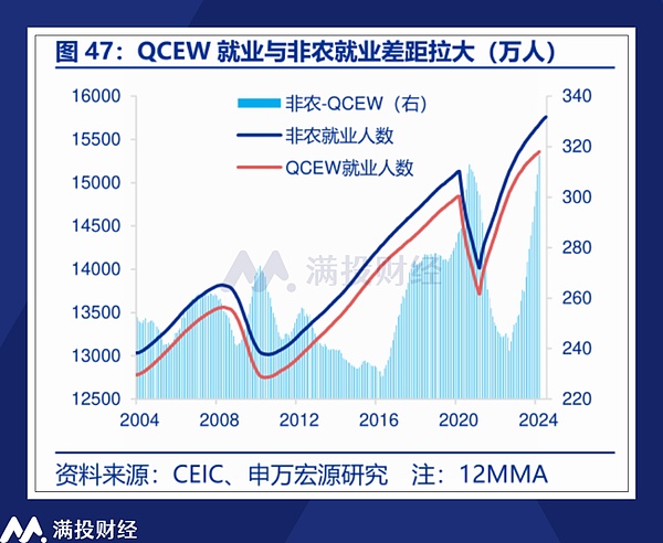 当然,这并不代表非农的数据就是完全失真的。因为非农的统计数据中会包含不少非法移民以及自雇人员,这类人员的社会保障本就存在一定缺失,因此不被计入美国劳工部的数据中。但整体来说,QCEW公布的数据显然不像之前非农就业数据那般强韧。