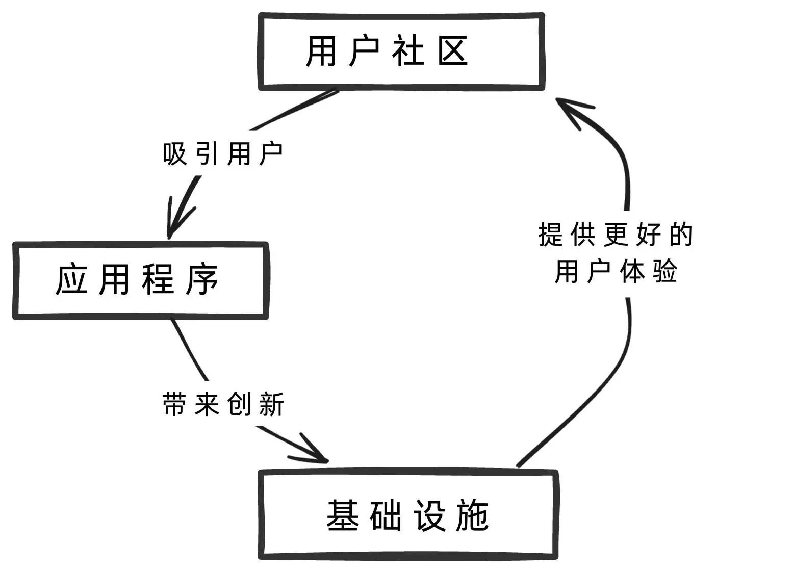 每个人都希望与用户互动,在他们已经存在的地方。当社区成员推广你的项目时,这向应用开发者和基础设施提供商发出了信号,降低了他们加入你生态系统的决策风险。这些新的基础设施和应用吸引新的社区成员和用户,良性循环不断循环。