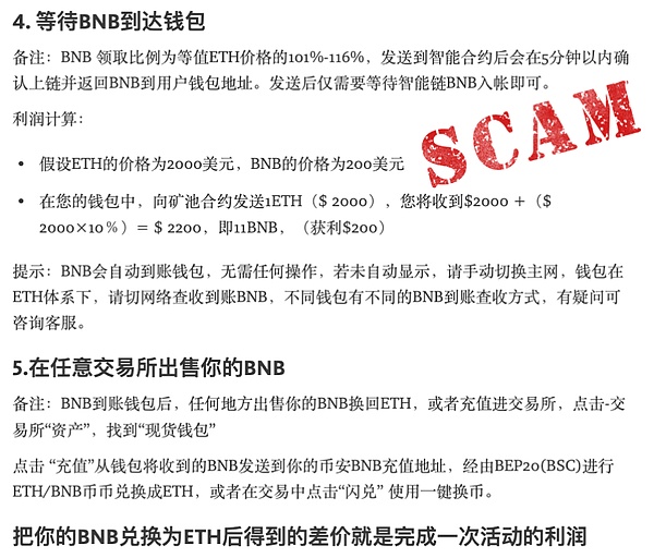 对于新手用户,骗子还贴心配备了详细的操作教程,教用户如何查看矿池质押情况、如何下载钱包以及如何把资金转入骗子的合约地址。利用流动性挖矿经济激励机制的假象,骗子成功吸引到用户投入资金。用户往合约地址打款后,收到了返利,便想投入更多的资金以获得更多的收益,此举正中骗子的圈套,最后用户投入的资金都被骗子卷走。