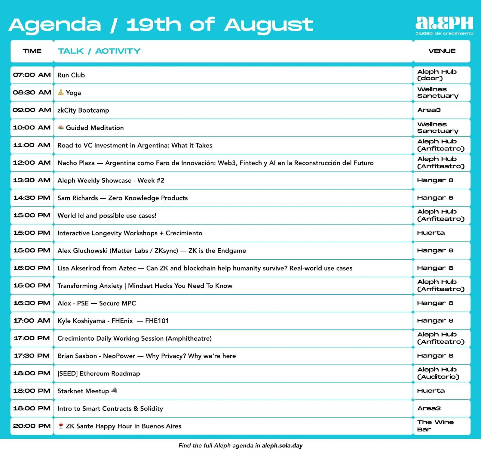 每天都有许多知名演讲者和专家在 Aleph 与初创公司进行面对面交流——从 Seba Serrano(Ripio)到 Alec Oxenford(OLX),再到 Nico Berman(Kaszek)和 Marta Cruz(NXTP Ventures)。在 Aleph 中心,每天都有大学级别的课程展示在 Web3 领域中所需的技能。这里有研讨会、讲座和指导,突出了一些行业中最具技术前沿的领域。