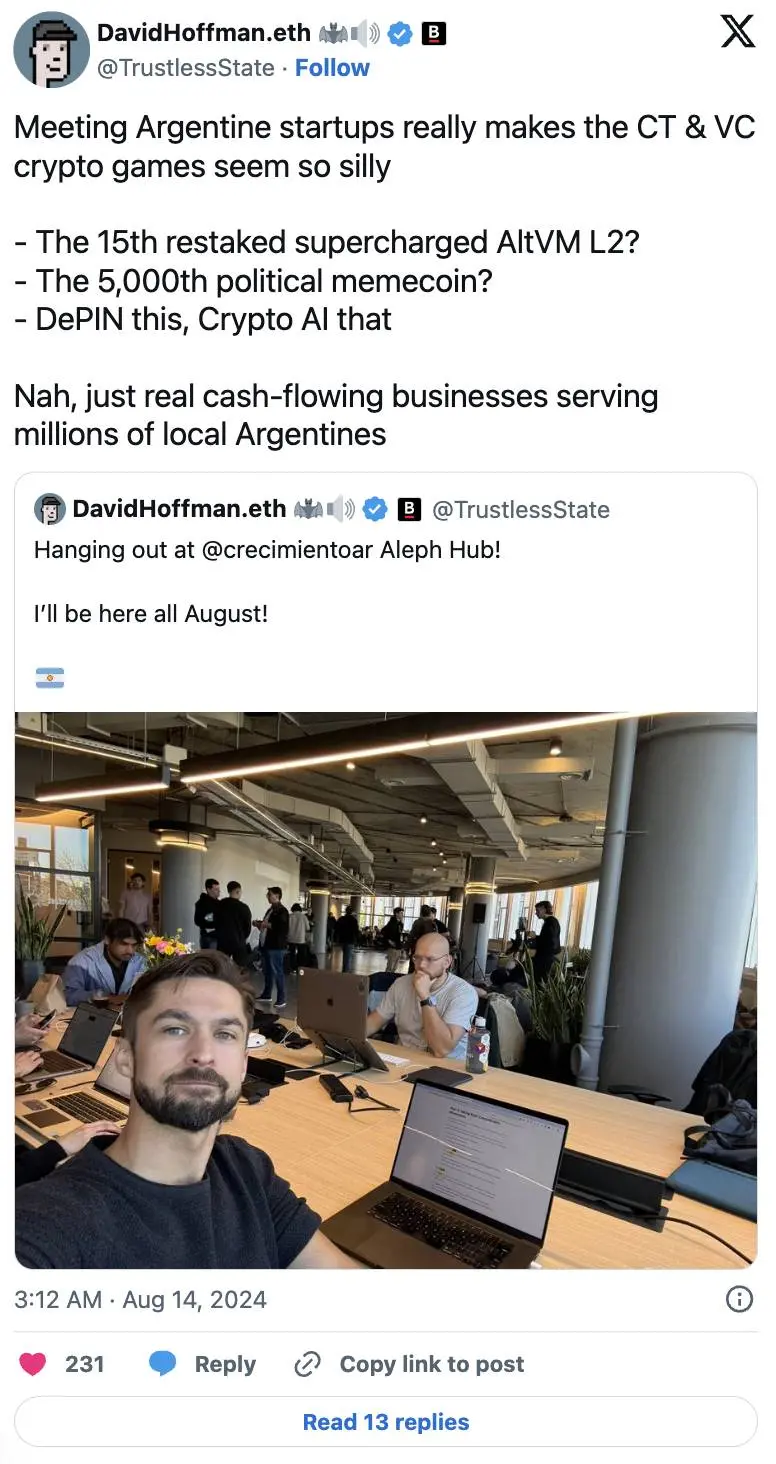 与阿根廷的初创公司交流后,真的让人觉得加密推特和风险投资的游戏显得如此荒谬。